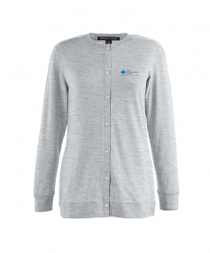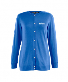 5 oz., 58% cotton, 39% modal, 3% spandex jersey; Soft modal blend drapes without clinging; Dyed-to-match grosgrain ribbon accents placket; Dura-Pearl buttons ideally spaced to avoid unflattering gaps; Banded rib knit cuffs and bottom hem; Longer 27" length (size medium) is ideal for wearing open or closed