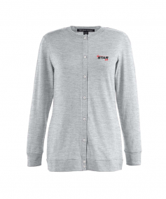 5 oz., 58% cotton, 39% modal, 3% spandex jersey; Soft modal blend drapes without clinging; Dyed-to-match grosgrain ribbon accents placket; Dura-Pearl buttons ideally spaced to avoid unflattering gaps; Banded rib knit cuffs and bottom hem; Longer 27" length (size medium) is ideal for wearing open or closed
