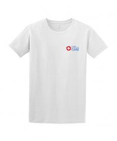 Made of 4.5 Oz., pre-shrunk 100% SoftStyle cotton. Features double-needle stitched neckline and sleeves, quarter-turned, 3/4" seamless collar.