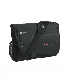 1,680D poly/450D poly/600D poly/400D nylon twill. Interior padded laptop compartment and padded tablet/e-reader sleeve. Features padded mouse/digital camera pocket, organization panel, side beverage/accessory holster, interior divider with organization panels, and adjustable, padded shoulder strap. Complies with Prop 65. 11.25" H x 14.25" W x 3.5" D